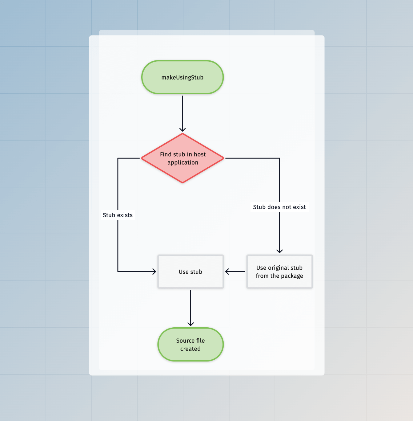 以下是我们如何通过 makeUsingStub 方法查找和执行 stubs 的可视化表示。