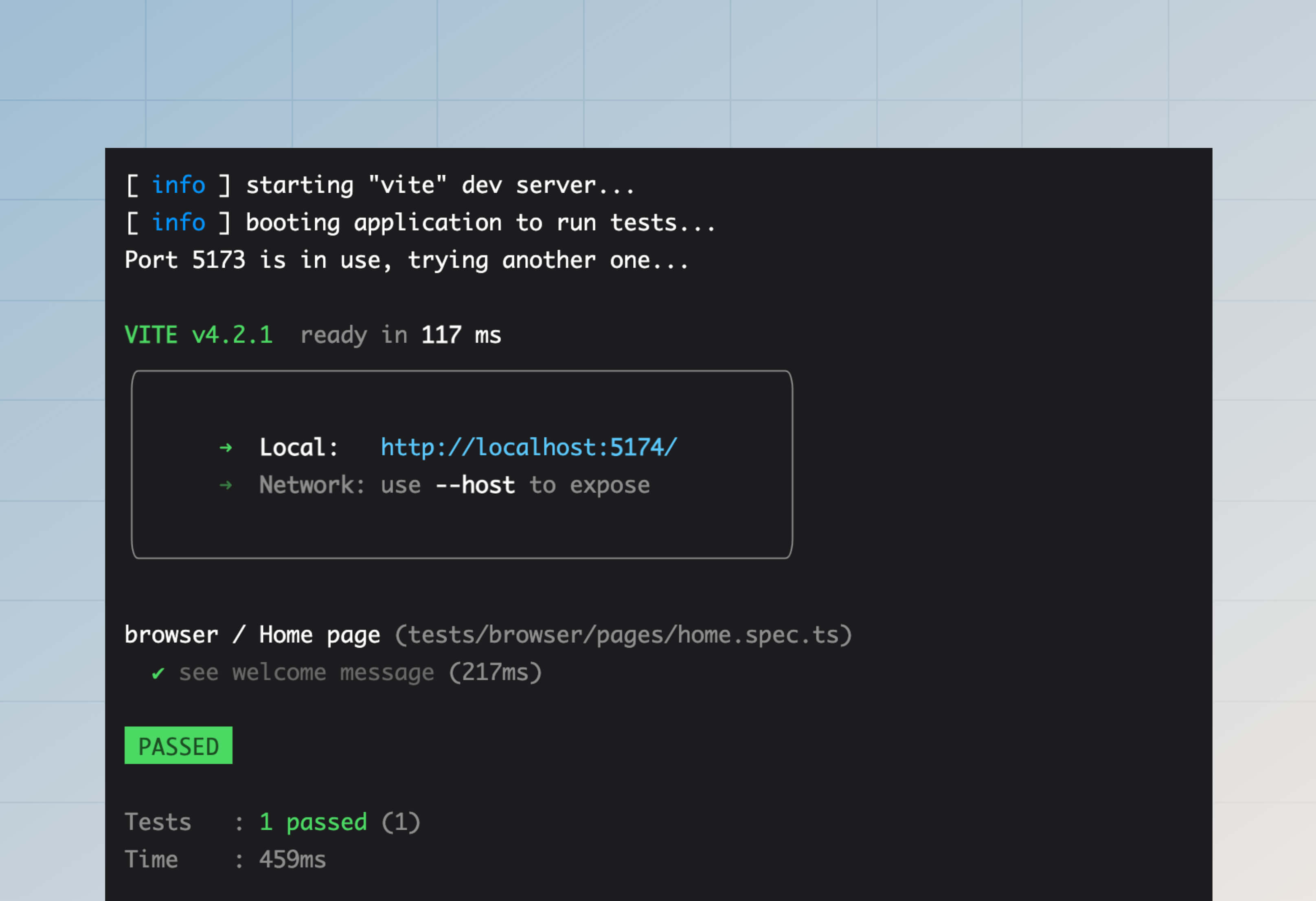 在开始编写测试之前,您必须在 tests/bootstrap.ts 文件中注册 browserClient 插件。